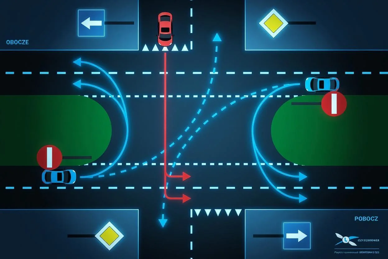 Celem tego materiału jest nie tylko usystematyzowanie wiedzy teoretycznej, ale przede wszystkim zapewnienie praktycznego zrozumienia mechaniki jazdy w trudnych warunkach skrzyżowań dwujezdniowych – z naciskiem na bezpieczne, zgodne z przepisami i logiczne wykonywanie manewrów.